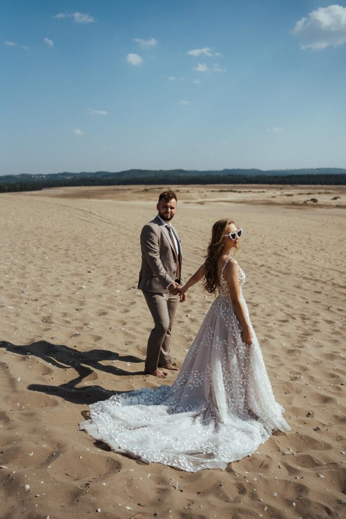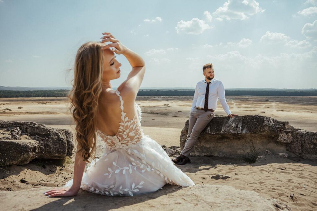 na sesje poślubną wybraliśmy się na Pustynie Błędowską… powiedzieć że było ciepło to tak jakby nic nie powiedzieć 🙂 30sto stopniowy upał i do tego sesję wykonaliśmy prawie że w samo południe 🙂 pomimo ciężkich warunków daliśmy radę a zdjęcia wyszły fenomenalnie , zobaczcie sami !